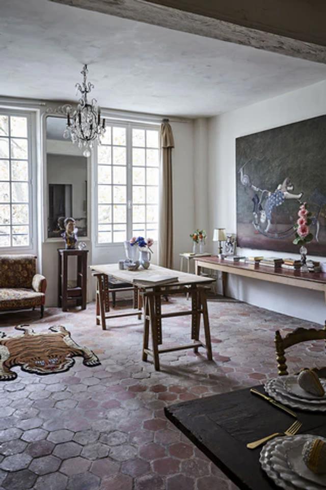To celebrate the arrival of ceramic works by Astier de Villatte we share with you a peek into the home of founders Ivan Pericoli and Benoît Astier de Villatte. Their apartment in Paris, located in the 5th arrondissement, is a space of wonder with seventeenth-century floor tiles, incredible furniture and high ceilings. Every surface homes a curious object or a breathtaking artwork.