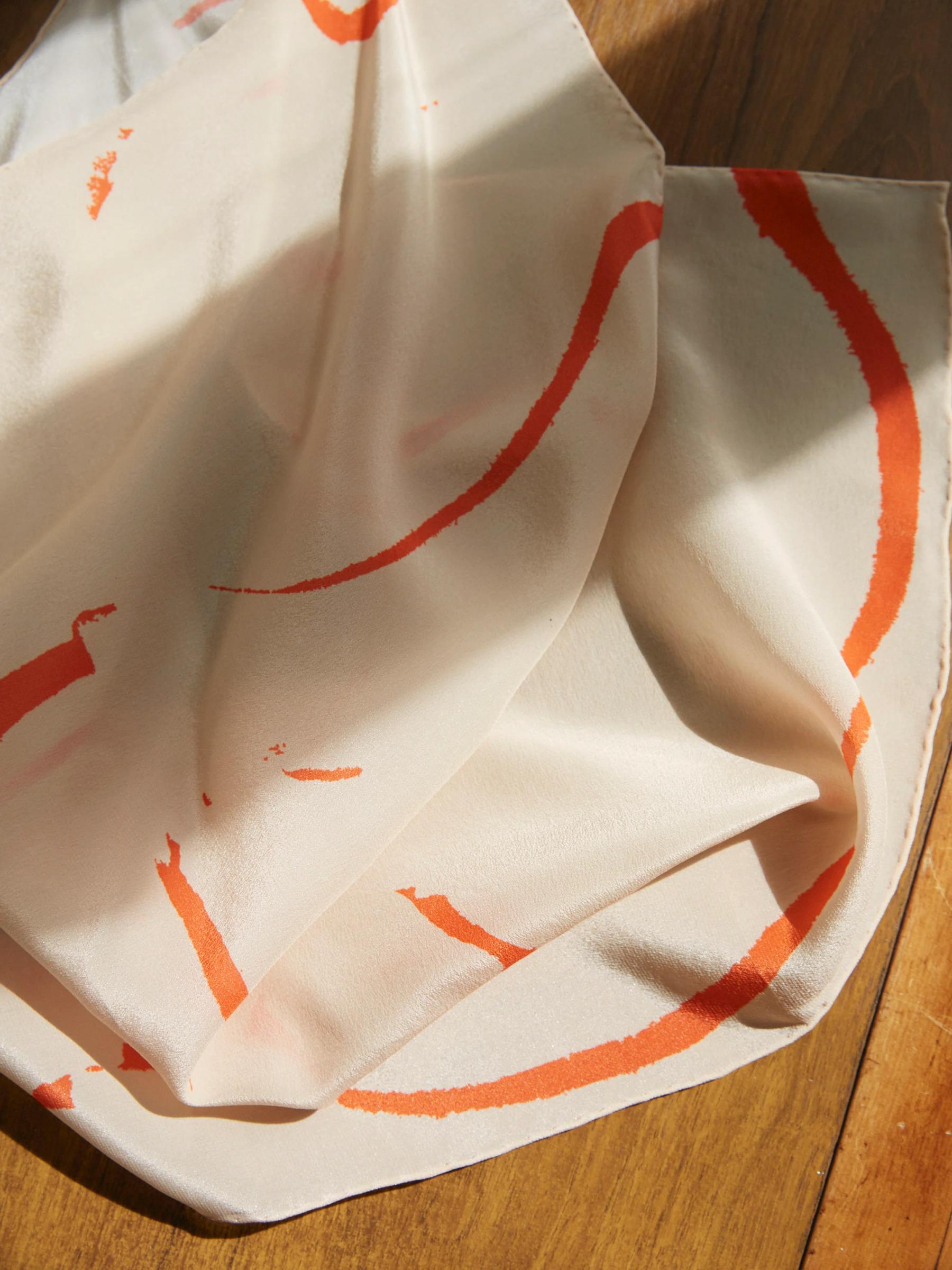Walker & Bing scarves are, first, works of art, created on themes and utilising print-making and drawing techniques. Once a final selection has been made, the artworks are transferred to a digital space in order to refine and prepare them for printing.