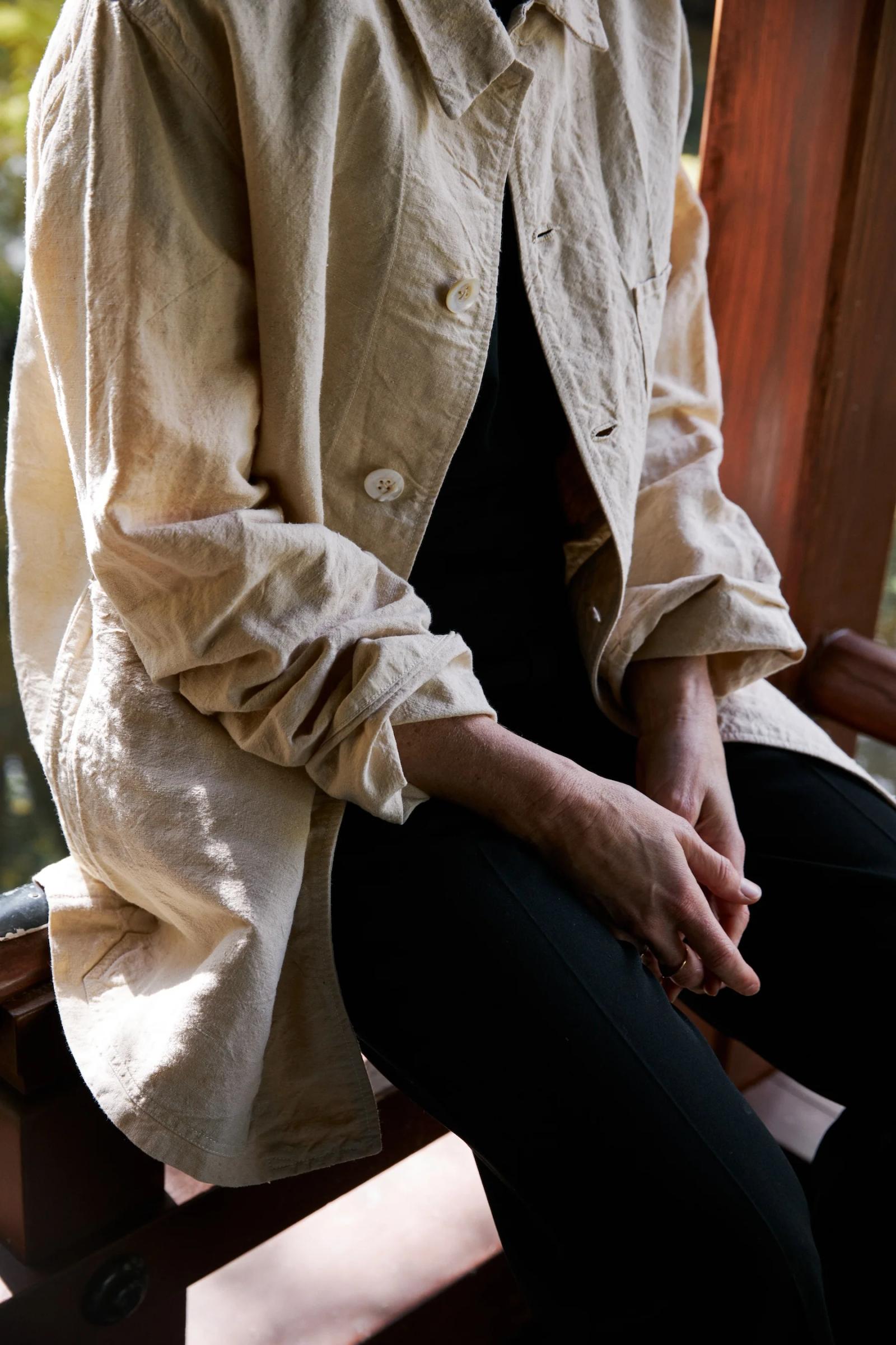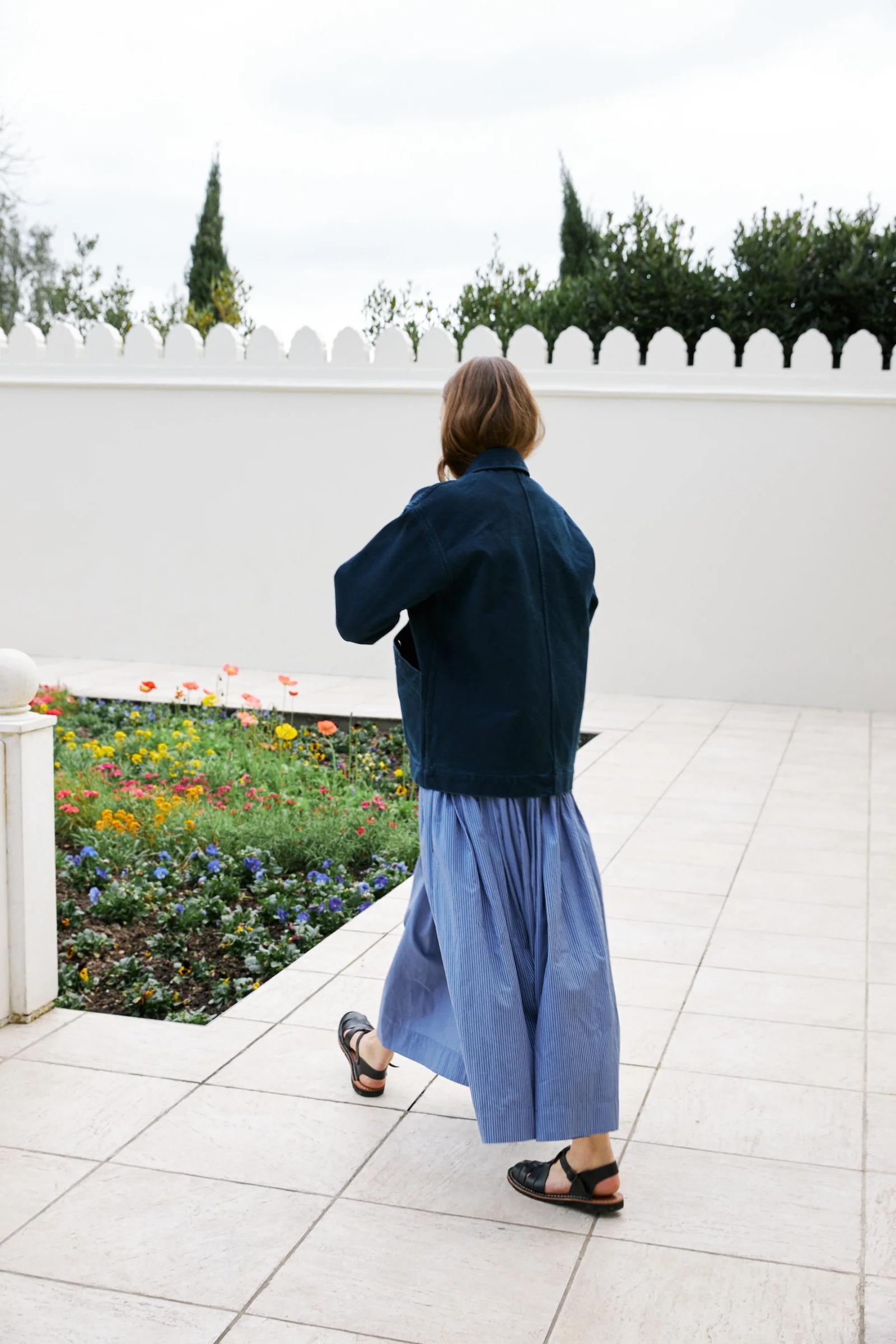 Made entirely by hand, Paris-based maker creates singular garments. The newest pieces to our collection, including 3-Pocket Jackets and full length Coat, also introduces an indigo blue colourway, woven in France on old industrial looms in Normandy.