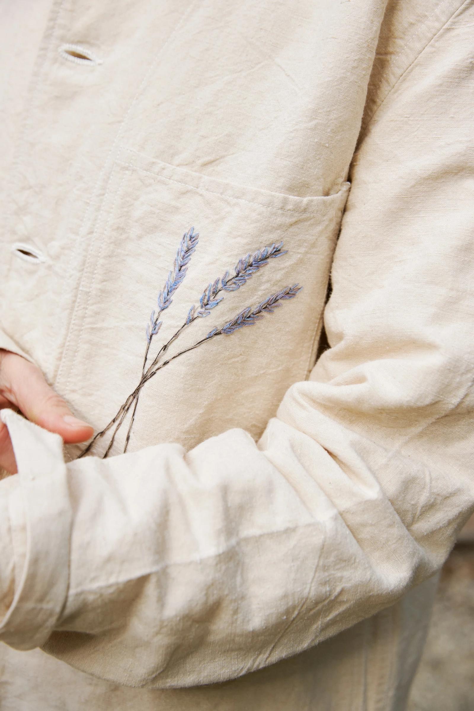 The collection's fabric consists mostly of vintage and antique cottons and linens, between 50 and 150 years old, sourced from markets around Paris. The age of the fabric adds both character and a sense of timelessness to each garment, making them truly one-off. Due to the nature of his production methods, quantities are extremely limited and highly sought after...
