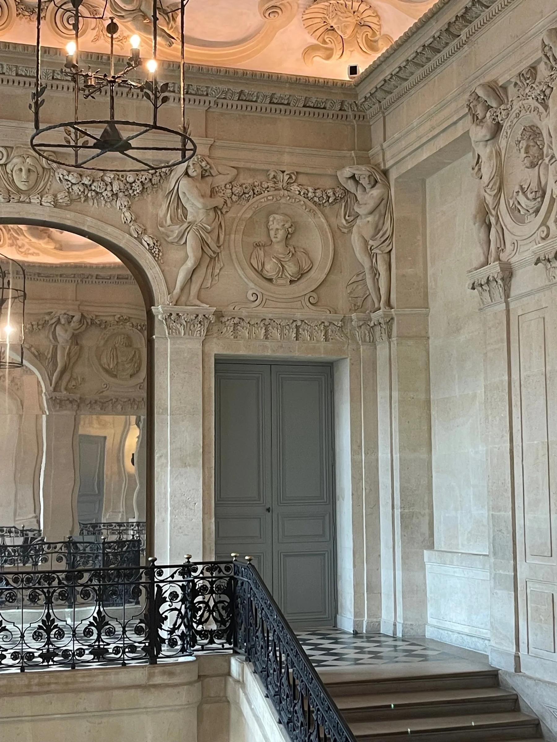 TO SEE: The Picasso Museum — Located in the Marais area, is not only a glorious maze of a building, but sports a wonderful selection of Picasso's works, some of which we had never seen before. We appreciated that some sculptural works were hidden into various parts of the interior build. The main room, with the checkerboard tiled floor, bronze candelabras, and perfect-blue painted walls was awe inspiring.